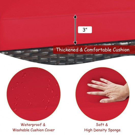 3 Pcs Solid Wood Frame Patio Rattan Furniture Set-Red