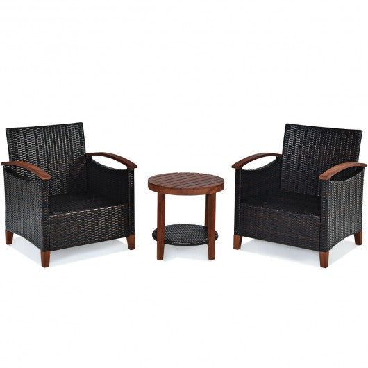 3 Pcs Solid Wood Frame Patio Rattan Furniture Set-Turquoise
