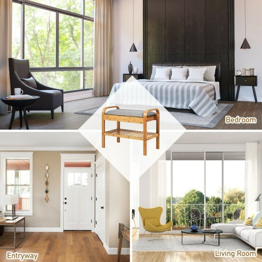 Shoe Rack Bench Bamboo with Storage Shelf -Natural