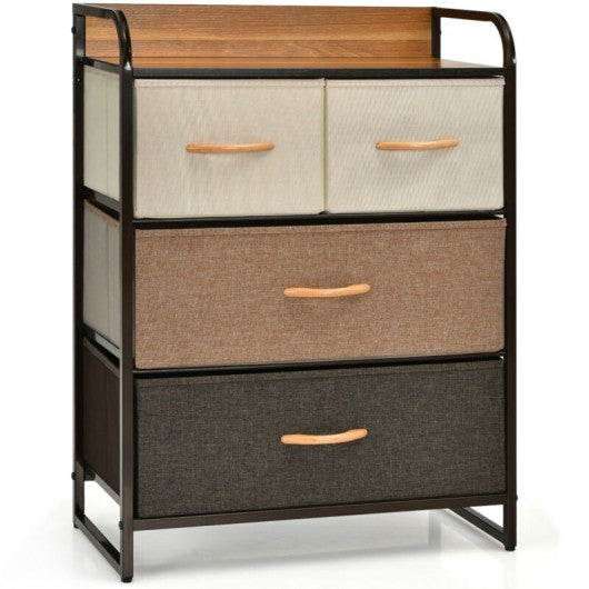 4-Drawer Tower Steel Frame Wooden Top Dresser Storage with 3-Tier Organizer