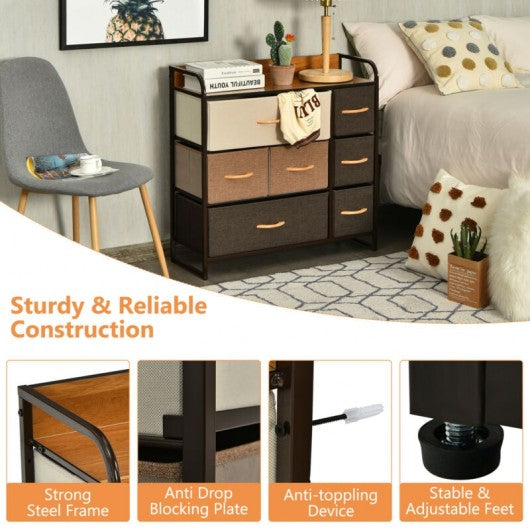 7 Drawer Tower Steel Frame and Wooden Top Dresser Storage Chest for Bedroom