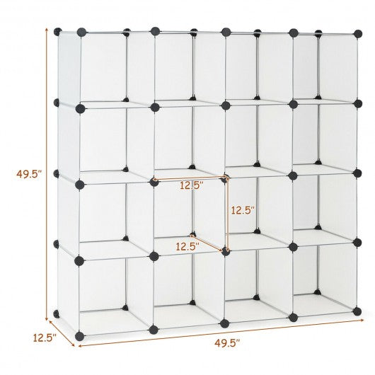 Come and DIY your personal storage cabinet freely! Made of premium PP plastic panels and rustproof steel frame the storage cabinet is sturdy and stable for longevity. Besides with 16 storage compartments the cabinet has ample space to store your toys books shoes and other daily items. You can use it separately for simple storage or stack these units in a great capacity to organize your objects. Meanwhile the cabinet with open storage design makes it convenience to take objects you want quickly. In a modern style this organizer matches any furniture style. It can be used in your living room bedroom office etc. Also the smooth surface is waterproof to make it easy to clean and maintain. Do not hesitate to buy it. If you are looking for this product don't hesitate to place an order! Made of PP plastic panel for safety and durability Sturdy steel frame and ABS connector ensures stability 16 cubes to organize your daily items Ideal to hold your toys clothes books shoes etc Modern appearance allows cabinet to fit any furniture style Easy to clean and maintain with damp cloth Simple to assemble with detailed instruction Hammer is included for you Suitable for your bedroom living room office bathroom Able to use it in different shapes to fit various spaces