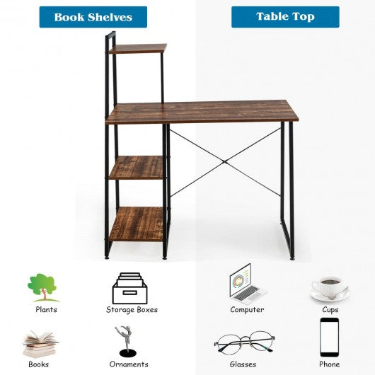 Computer Desk with Shelves Study Writing Desk Workstation Bookshelf-Brown