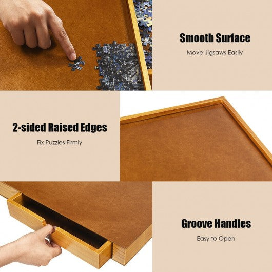 1500 Pcs Wooden Jigsaw Puzzle Table with 4 Drawers-Wood