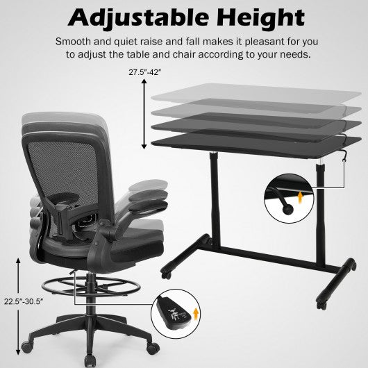 Height Adjustable Computer Desk Sit to Stand Rolling Notebook Table -Black