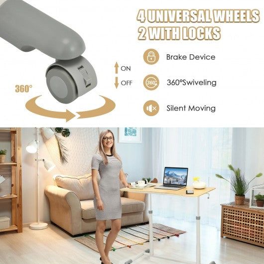 Height Adjustable Computer Desk Sit to Stand Rolling Notebook Table -Natural