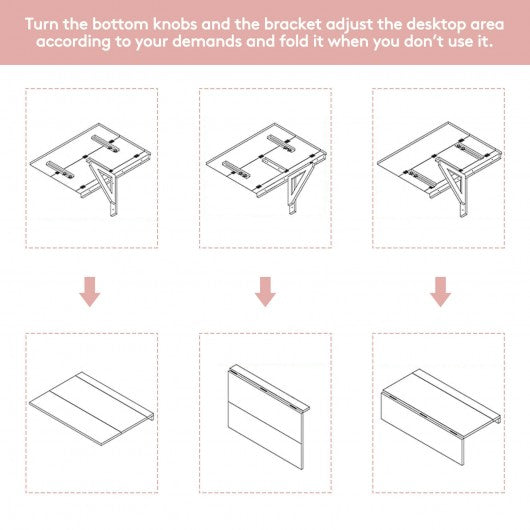 Space Saver Folding Wall-Mounted Drop-Leaf Table-Pink