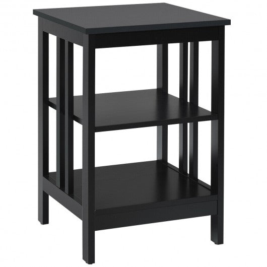 The multifunctional nightstand is suitable for various rooms that need storage shelves or display space. Made of selected quality and spray-painted finish board this side table is waterproof with durable construction. Comes with two open compartments this side table offers enough storage space for flower vase decorative lamp or various reading materials. Smooth surface of end table prevents children and the elderly from injuring. And it is a perfect decoration with elegant and stylish design. Plus it is easy to assemble with instructions and required accessories. It is a side table or nightstand for your living room or bedroom! Premium MDF and reinforced bars assure durability and stability Painted surface is easy to maintain and waterproof 3-tier ample space to meet different storage needs Pads at bottom prevents scratching of floor Simple and elegant appearance goes well with home decor Suitable for living room bedroom entryway etc Easy to assemble with instructions