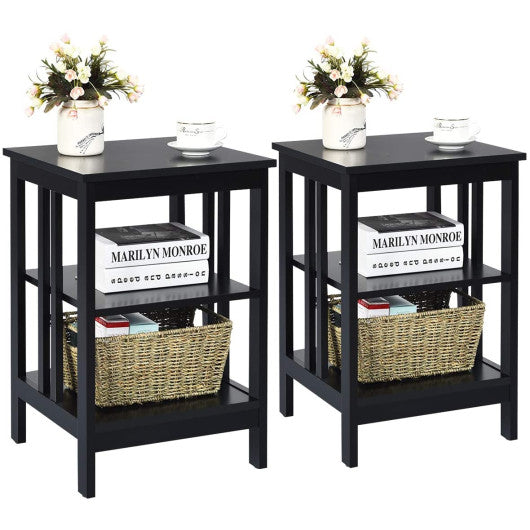 Set of 2 Multifunctional 3-Tier Nightstand Sofa Side Table with Reinforced Bars and Stable Structure -Black