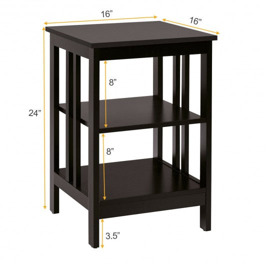 3-tier Side Table Nightstand with Stable Structure-Espresso