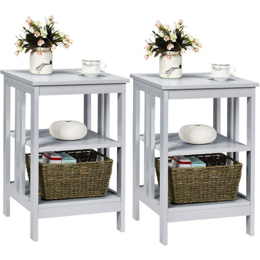 Set of 2 Multifunctional 3-Tier Nightstand Sofa Side Table with Reinforced Bars and Stable Structure -Gray