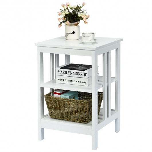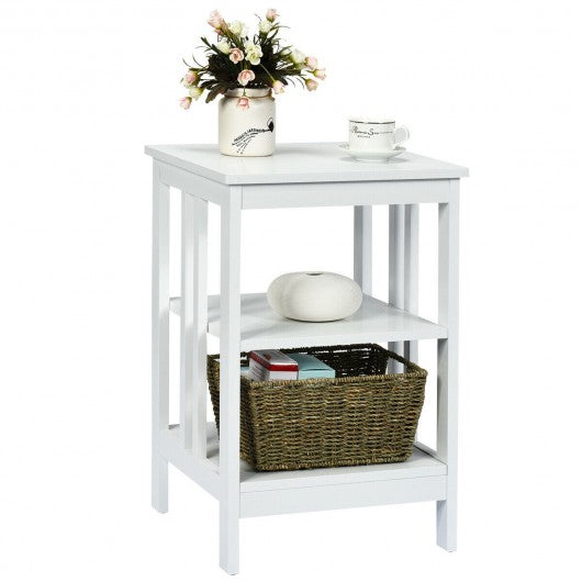 3-tier Side Table Nightstand with Stable Structure-White