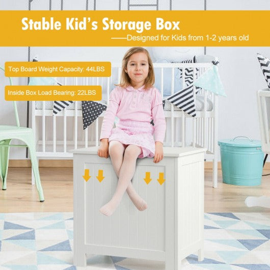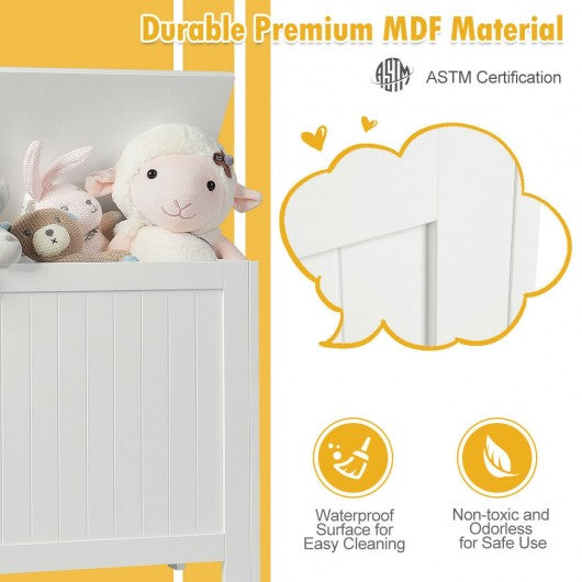 With this box you can put the kid's toys in this large storage space. Or you can also encourage your kids to organize toys by themselves. 44 lbs of bearing capacity are enough for your daily needs thus making the room tidier. It is high-quality made of durable and safe material for long service life. The flip-top lid provides easy access saving your energy. Simple white finish effortlessly coordinates with your existing home d�cor and is suitable for entryways bedrooms playrooms etc. This box is not only a great storage solution but also a decoration of your home. If you are looking for such a product. Don't hesitate to buy it! Large storage space for all kinds of items like stuffed animals dolls blankets or books Non-toxic and odorless MDF material is safe for family use A durable box with a high bearing capacity of 22 lbs for interior and 44 lbs for the top panel Flip-top lid design facilitates taking out or putting back items A strong support hinge prevents the lid from falling off The smooth and waterproof surface makes it easy to clean ASTM certification ensures high quality and user�s safety Easy to assemble according to the instructions Wide application for bedroom living room or kindergarten It can be used as a toy box bedside table kids'stool etc.