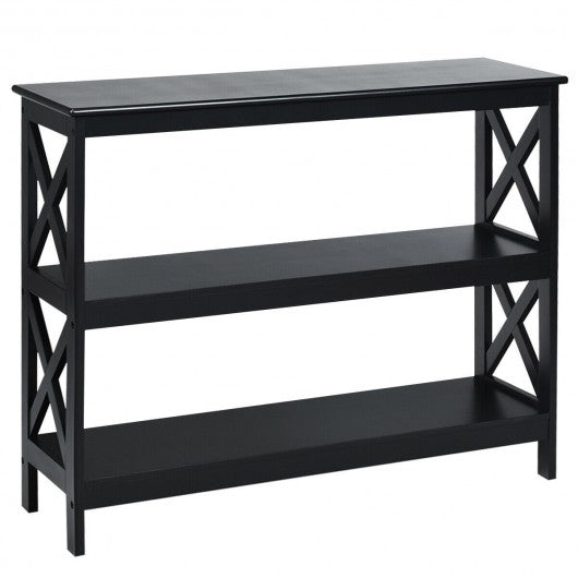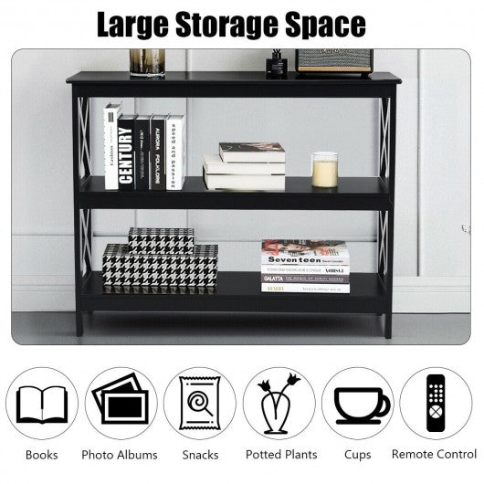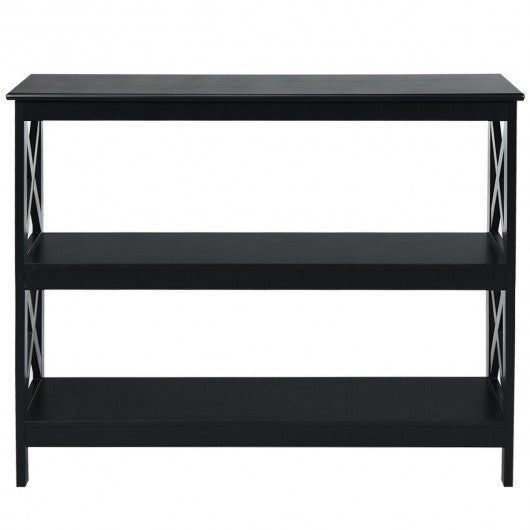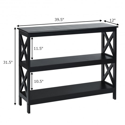 3-Tier Console X-Design Sofa Side Accent Table-Black