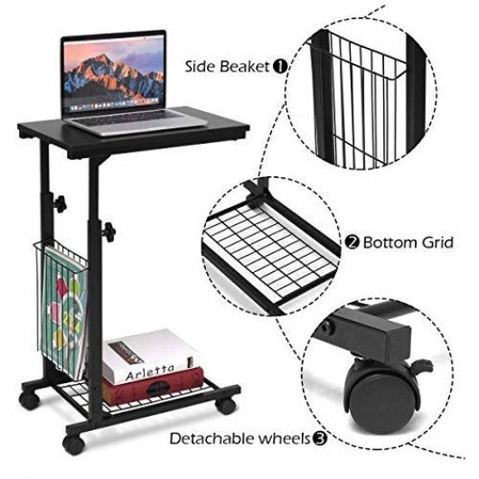 This is the C-shaped snack table which can be used as end tables lamp tables etc. This is the C-shaped snack table. Can be used as end tables lamp tables sofa side table bed side table laptop desk coffee table decorative displays tables or simply accent pieces. This functional side table has a black finish top which is ideal for your snacks dishes remotes books or laptop. Steel frame is solid and durable. With the feature of small this end table is ideal for sofa ottoman or couch side and the lower steel mesh can provide extra storage space for books magazines etc. It will make you life easy and convenient. Do not hesitate to buy one and enjoy your leisure time. This is the C-shaped snack table. Don't hesitate to buy it. Brand new and high quality Rolling caster (including 2 lockable caster) " C " shaped easy to slide the feet of the table underneath a sofa or bed Lower steel mesh can provide extra storage space for books magazines etc Compact size space-saving and lightweight design Height adjustable Easy to clean Made from 15mm chipboard and sturdy steel frame durable and sturdy The snack table is perfect for holding snacks dishes remotes books or laptop etc Great as a coffee table dining table corner table end table kitchen trolley Assembly requirement