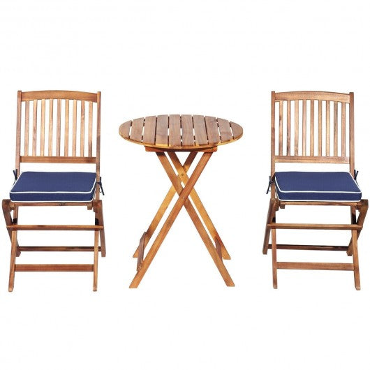 3PCS Patio Folding Wooden Bistro Set Cushioned Chair -Navy