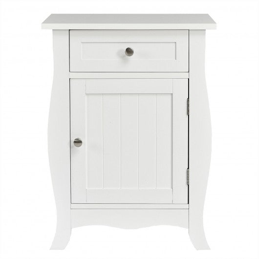 Wooden Accent End Table with Drawer Storage Cabinet Nightstand-White