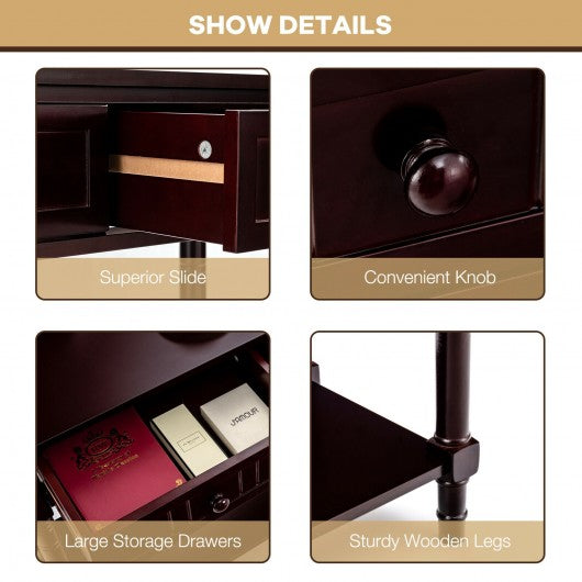 Console Accent Sofa Table with Drawers and Bottom Shelf-Brown