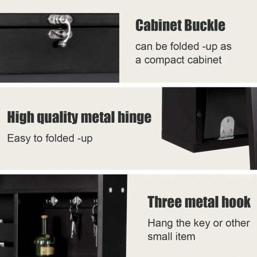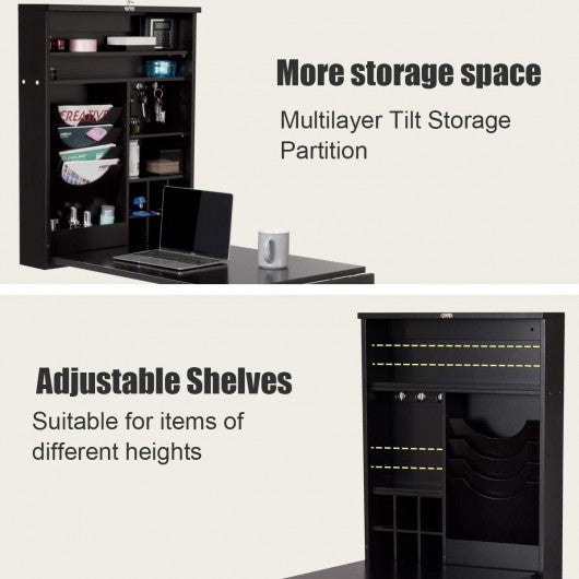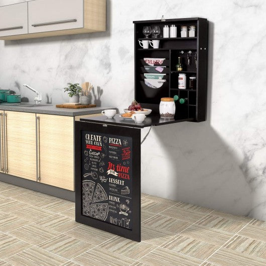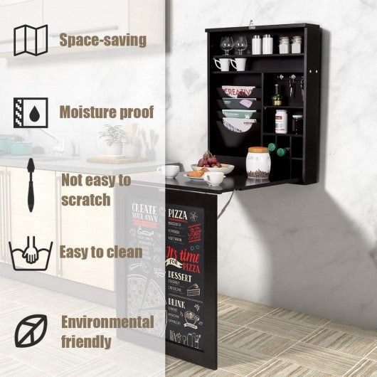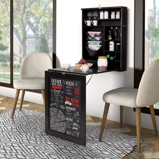 This painted black writing desk is an ideal solution to any room with limited space. It's compact and can fold away to keep your room neat. You can pull it down when you need to work and fold up when not being actively used. It has enough space to store some papers a few folders pens or pencils. Whether you choose to use this in your home office living room bedroom or kitchen you are sure to be pleased with the amazing functionality of this desk. Don't hesitate to buy it now! Brand new and high quality Can be used as a working surface and storage area wherever you need it Also can be used as a blackboard With a board eraser Including bill organizers fix shelves 2 adjustable shelves and 3 hooks Wall-mounted design makes the desk modern and convenient Clean look and stylish design enhances the look of the existing furniture collection Durable MDF construction Fold easily when not in use to save space Enough shelves to store essential items books magazines etc. Small lattice can store more items makes your desktop more organized Mount easily onto any wall No assembly required