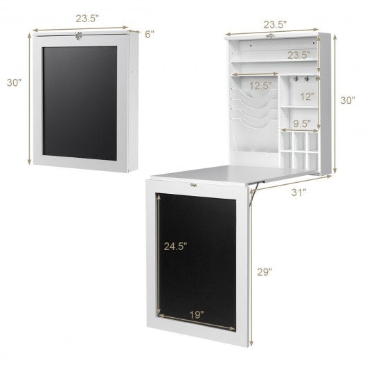 Space Saver Convertible Wall Mounted Desk-White