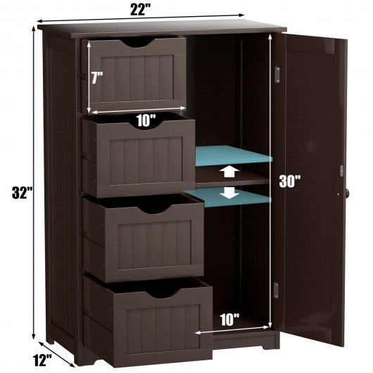 Standing Indoor Wooden Cabinet with 4 Drawers-Brown