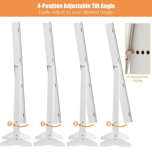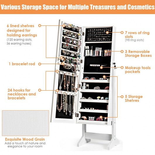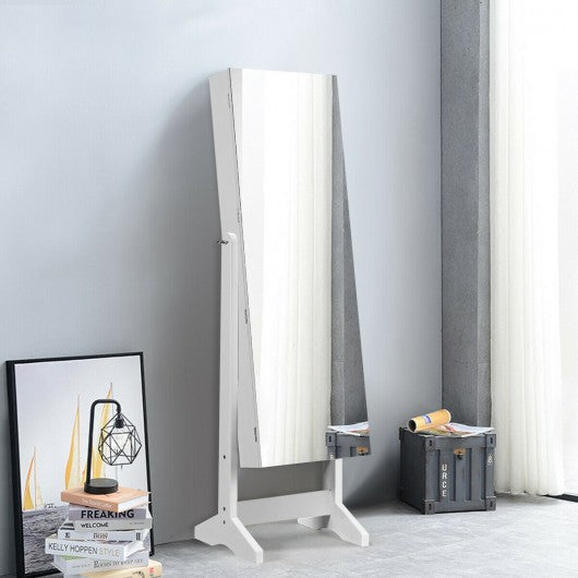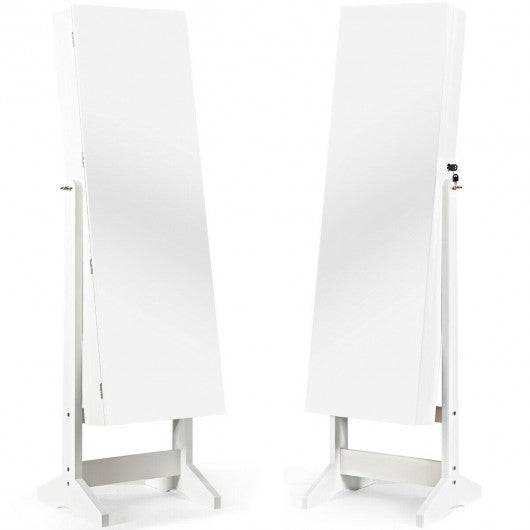 Standing Jewelry Armoire Cabinet with Full Length Mirror-White