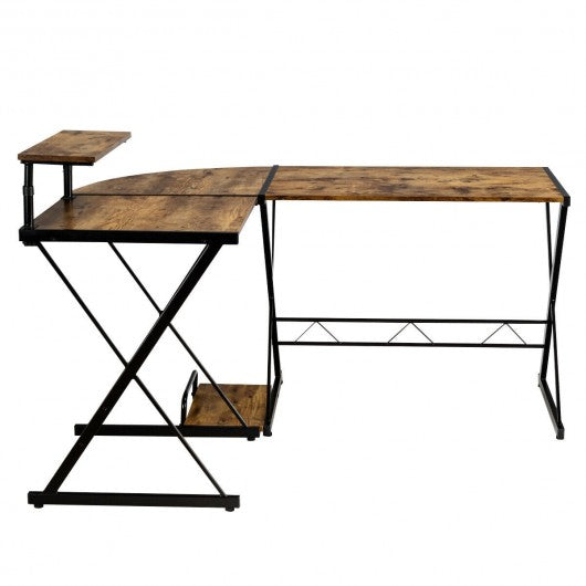 L-Shaped Desk Reversible Corner Computer Desk with Movable Shelf and CPU Stand-Rustic Brown