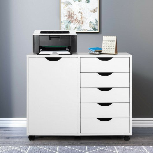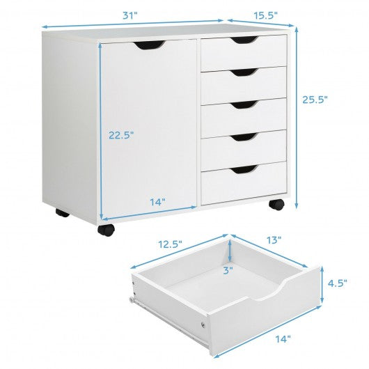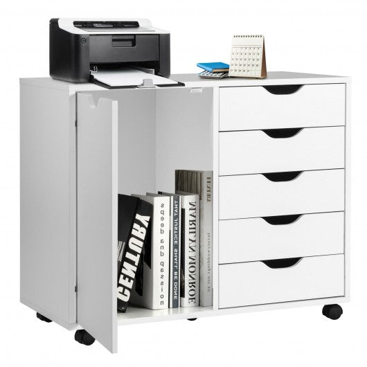 5-Drawer Dresser Chest Mobile Storage Cabinet with Door-White