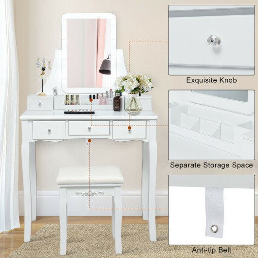 Dimmable Bulbs Touch Switch Vanity Dressing Table Set with Removable Box-White