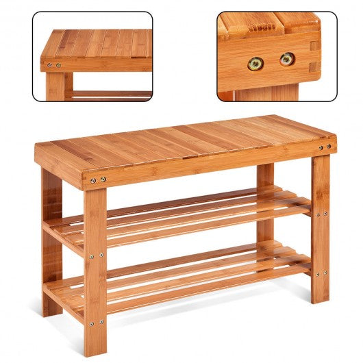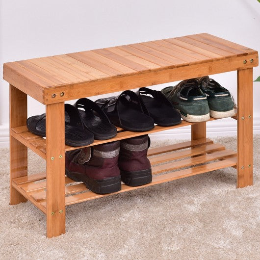 3 Tier Bamboo Bench Storage Shoe Shelf-Natural