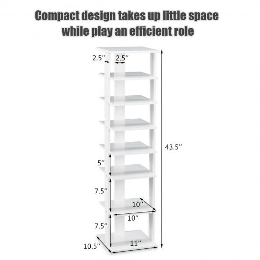 Specification: Color: White Material: Wood Overall dimension: 11" x 10.5" x 43.5" (L x W x H) Distance from each shelf: 7.5" 5.0'' Weight: 15 lbs Weight capacity weight of each shelf: 11 lbs Package includes: 1 x Bamboo shoe rack 1 x Instruction
