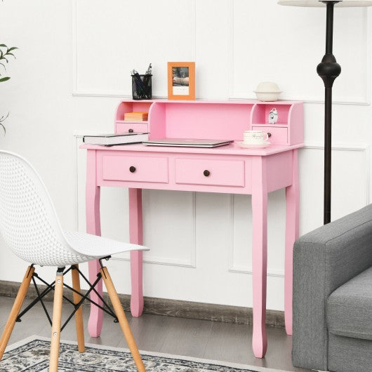 Removable Floating Organizer 2-Tier Mission Home Computer Vanity Desk-Pink