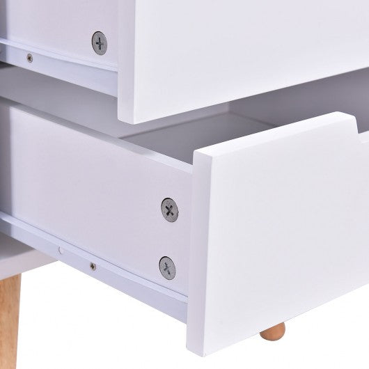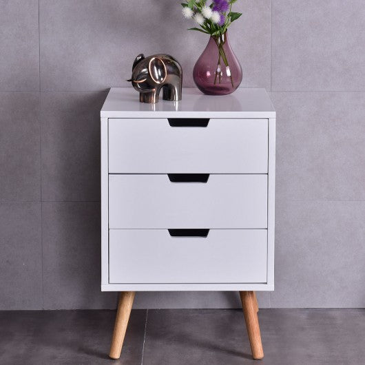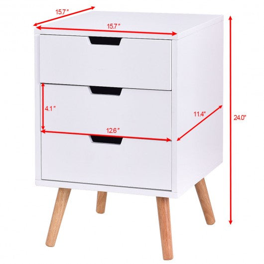 Specification: Color: White Material: MDF + oak wood Overall dimension : 15.7" x 15.7" x 24.0" (L x W x H) Drawers dimension: 12.6" x 11.4" x 4.1" (L x W x D) Net weight: Approx 12 lbs Package includes: 1 x Nightstand