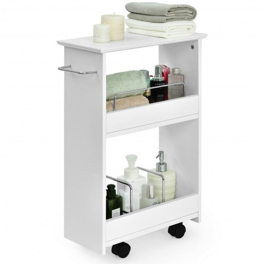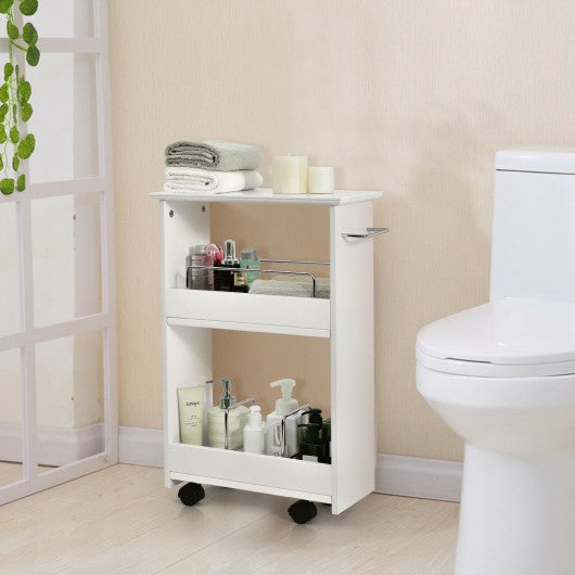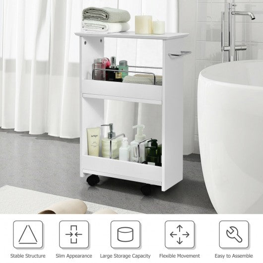 Slim Rolling 3-Tier Bathroom Mobile Shelving Cabinet wih Handle