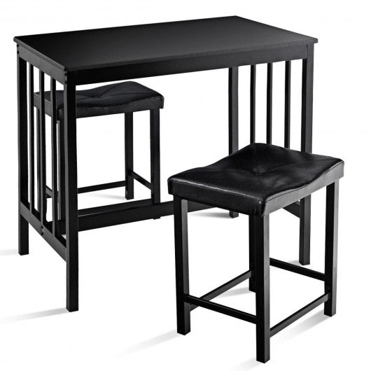 This 3-piece counter height dining set is ideal to be used in the dining room to enjoy a lavish meal with family members. The set can save a lot of space in the dining room for you. The two stools can be put under the table when it is not dining time. With long sturdy legs the rectangular table is very durable to accompany you for years. Made of unique faux marble the whole table seems to be stylish and elegant. With the two modern backless upholstered stools the whole set appears to be attractive and classical. It is a nice choice to have this 3-piece counter height dining set in your house to enjoy happy time with family members. Brand new and high quality Modern and upscale furniture Sturdy and durable for years of use 3-piece set offers simplicity and versatility Perfect for smaller dining spaces Includes bar height table and 2 upholstered saddleback stools Stools tuck neatly under the table when not in use Some basic assembly required