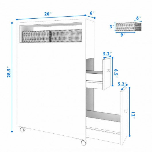 Specification: Material: MDF wood Color: White Overall dimension: 20" x 6" x 28.5" (L x W x H) Size of basket: 9" x 6" x 3" (L x W x H) Package includes: 1 x Floor cabinet 2 x Baskets