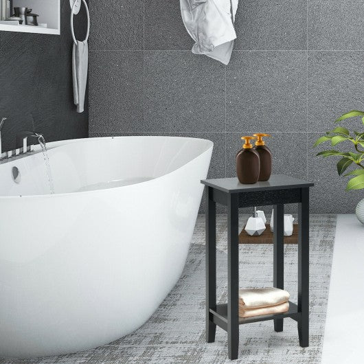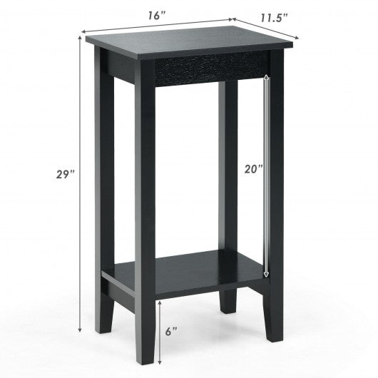 2-Tier Nightstand End Side Wooden Legs Table for Bedroom-Black