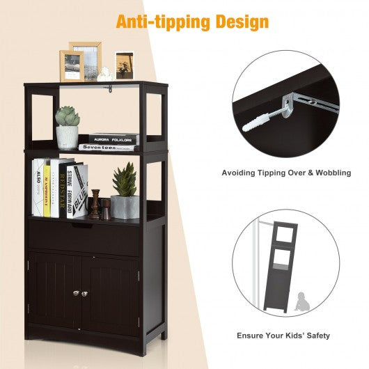 Bathroom Storage Cabinet with Drawer and Shelf Floor Cabinet-Espresso