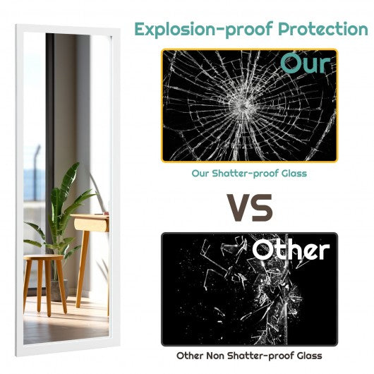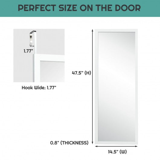 This hanging mirror featuring a sturdy MDF frame this full-length mirror has a long service life and is not easy to deform or crack. The 47.5" x 14.5" size provides a large field of vision allowing you to perfectly display your outfit from head to toe. High-quality glass creates HD imaging without distortion. It is worth mentioning that the explosion-proof film can prevent fragments from splashing out when impacted by external forces. In addition equipped with hooks and screws the mirror can be either hung over the door or mounted on the wall. It is definitely an ideal choice for small spaces! If you are looking for a hanging mirror like this do not hesitate to place an order! Sturdy and durable MDF frame for long-term use 47.5" x 14.5" size offering a full-length view reflection Featuring with 2 hooks for hanging the mirror over the door Features pre-drilled holes in the back of the frame for wall-mounted use High-quality glass to create HD imaging without distortion Occupies minimum space but provides full functionality Simple sleek finish with clean lines to bring a modern touch to your home decor
