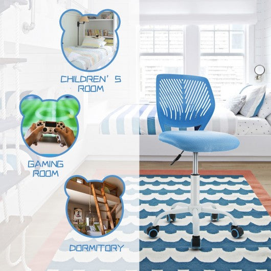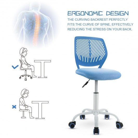 Adjustable Office Task Desk Armless Chair-Blue