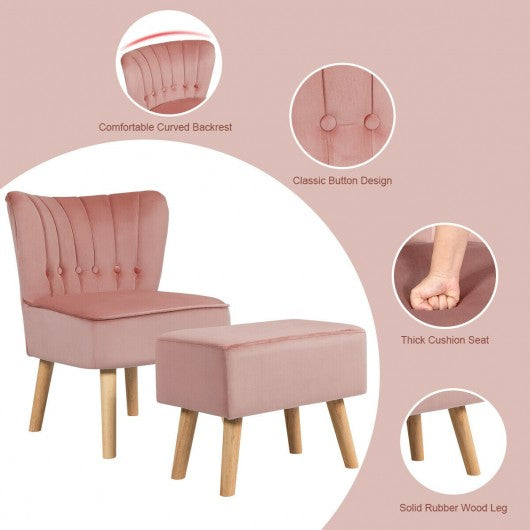 Leisure Chair and Ottoman Thick Padded Tufted Sofa Set-Pink