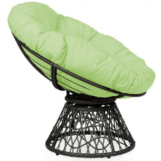 Rattan Papasan Chair Ergonomic 360-degree Swivel Soft Cushion Garden-Green