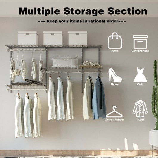 Custom Closet Organizer Kit 3 to 5 ft Wall-Mounted Closet System with Hang Rod-Gray