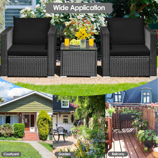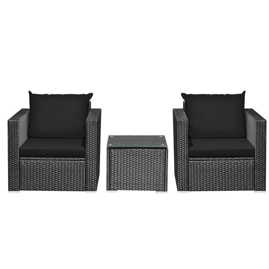 3 Pieces Patio wicker Furniture Set with Cushion-Black