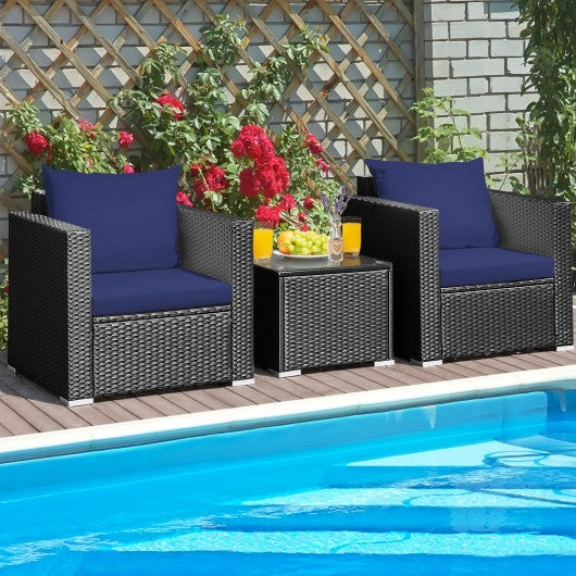 3 Pcs Patio wicker Furniture Set with Cushion-Navy