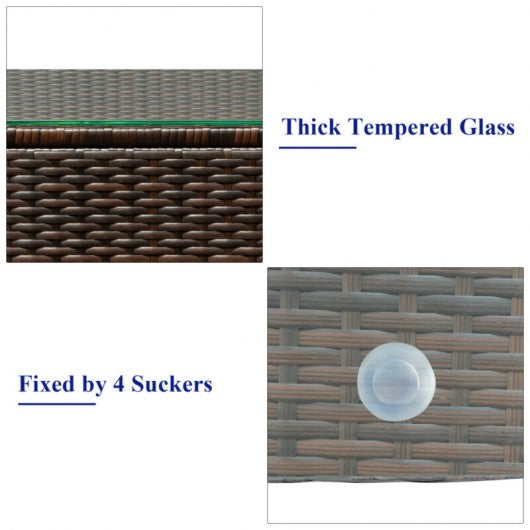 Made of sturdy steel and premium rattan the sofa set is sturdy and durable which can be used for a long time. Comes with a tempered glass top table not only can you place some drinks or snacks on the hard tabletop to take conveniently but also some decors like a vase can be put on the tabletop. The sofas are equipped with a back and seat cushion which will give you excellent comfort. And the cover of the cushion has a zipper for removing and rinsing easily. It's perfect to relax and enjoy time with your friends and family. If you are looking for this product don't hesitate to place an order! The strong and sturdy steel frame ensures sturdiness Hand-woven rattan is breathable and durable A wide armrest of suitable height is good to relax your arm Thick and soft cushion with a high-density sponge for your hip and back Cover with the zipper of the seat cushion is convenient to be taken off and washed The coffee table comes with removable glass easy to wipe and clean Aluminum feet of sofa and table protect bottom rattan Perfect for your outdoor space such as patio poolside and garden Easily assemble according to instruction in a short time Installation guide