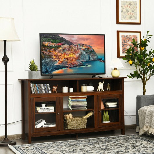 58" TV Stand Entertainment Console Center with 2 Cabinets-Walnut