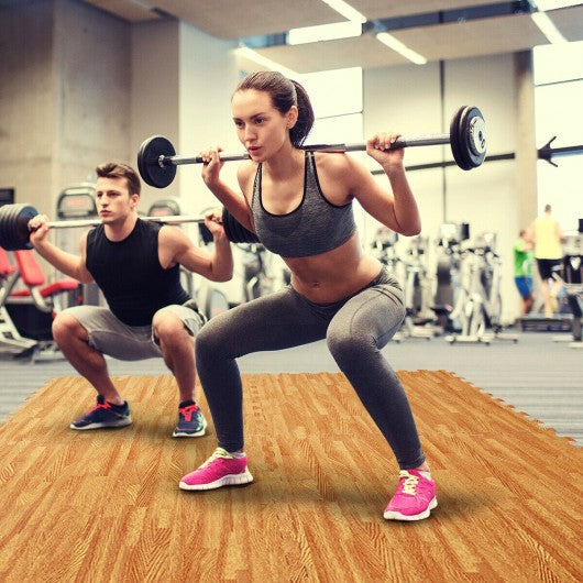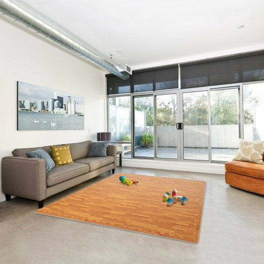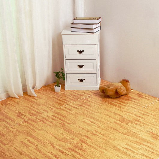12PC Wood Grain Interlocking Floor Mats -Natural