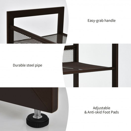 Specification: Color: Brown Material: Steel 2-Tier Product imension: 29"x 12" x 17" (L x W x H) 3-Tier Product dimension: 29"x 12" x 25" (L x W x H) 4-Tier Product dimension: 29"x 12" x 32.5" (L x W x H) Shelf dimension: 28" x 11" (L x W) Maximum weight of each shelf: 11 lbs Net weight: 13.5 lbs Package Includes: 1 x Shoe rack 1 x Instruction