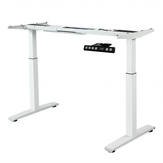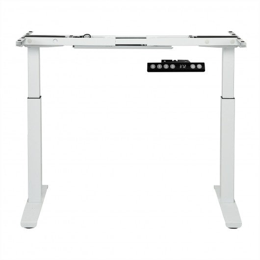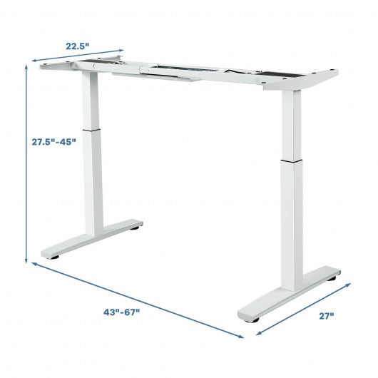 Prolonged sedentary work may lead to chronic fatigue and increase the risk of disease. This sit-stand desk mitigates these problems by allowing you to easily switch between sitting and standing to support your natural posture. Adjustable legs with a powerful lifting system will meet all your different height needs. The intelligent push-button controller features 3 programmable memory settings and up/down movement controls. You can easily preset your desired sitting position with the memory function. It not only kills the pain of the neck and back but also enables you to stay awake and alert after long hours of intense work. Constructed with heavy-duty steel this stand-up desk with 4 adjustable foot levelers is very sturdy and stable which can stand the test of time. The quiet operation will also win applause from you and never fail your passion for quietness. Moreover 43" to 67" adjustable width will perfectly match with various tabletop sizes. If you are looking for such a product don't hesitate to buy it now! Powerful smooth dual motor lift system with 1.5" per second lift speed 43 inch to 67-inch adjustable width is suitable for various tabletop sizes Adjustable height of 27.5"-45" allows you to find the optimal position to sit or stand to work Intelligent push-button controller with up/down buttons and 3 programmable memory settings LED display gives you an intuitive impression of the frame height All steel construction is sturdy and durable 4 adjustable foot levelers will keep the desk stable on uneven ground Easy to assemble with detailed instruction and all hardware included